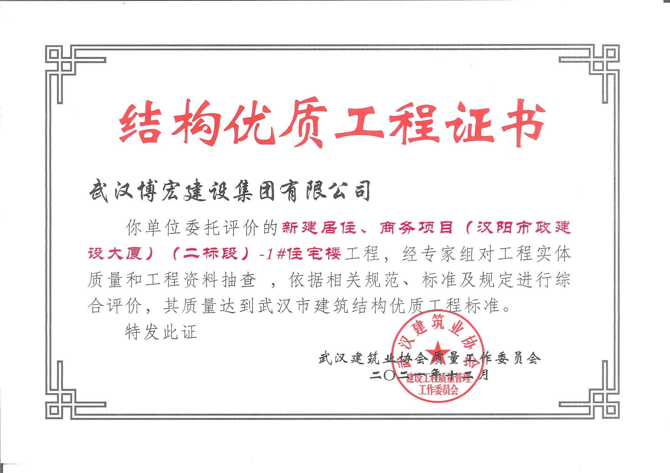 漢陽市政大廈(二標(biāo)段)-2#住宅樓武漢市建筑結(jié)構(gòu)優(yōu)質(zhì)工程