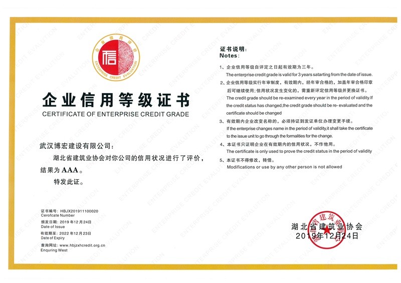 武漢建筑業(yè)信用企業(yè)等級證書