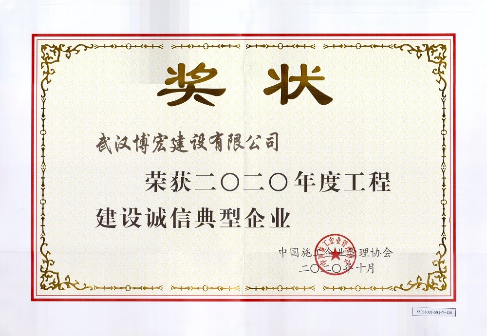 2020年度工程建設(shè)誠信典型企業(yè)