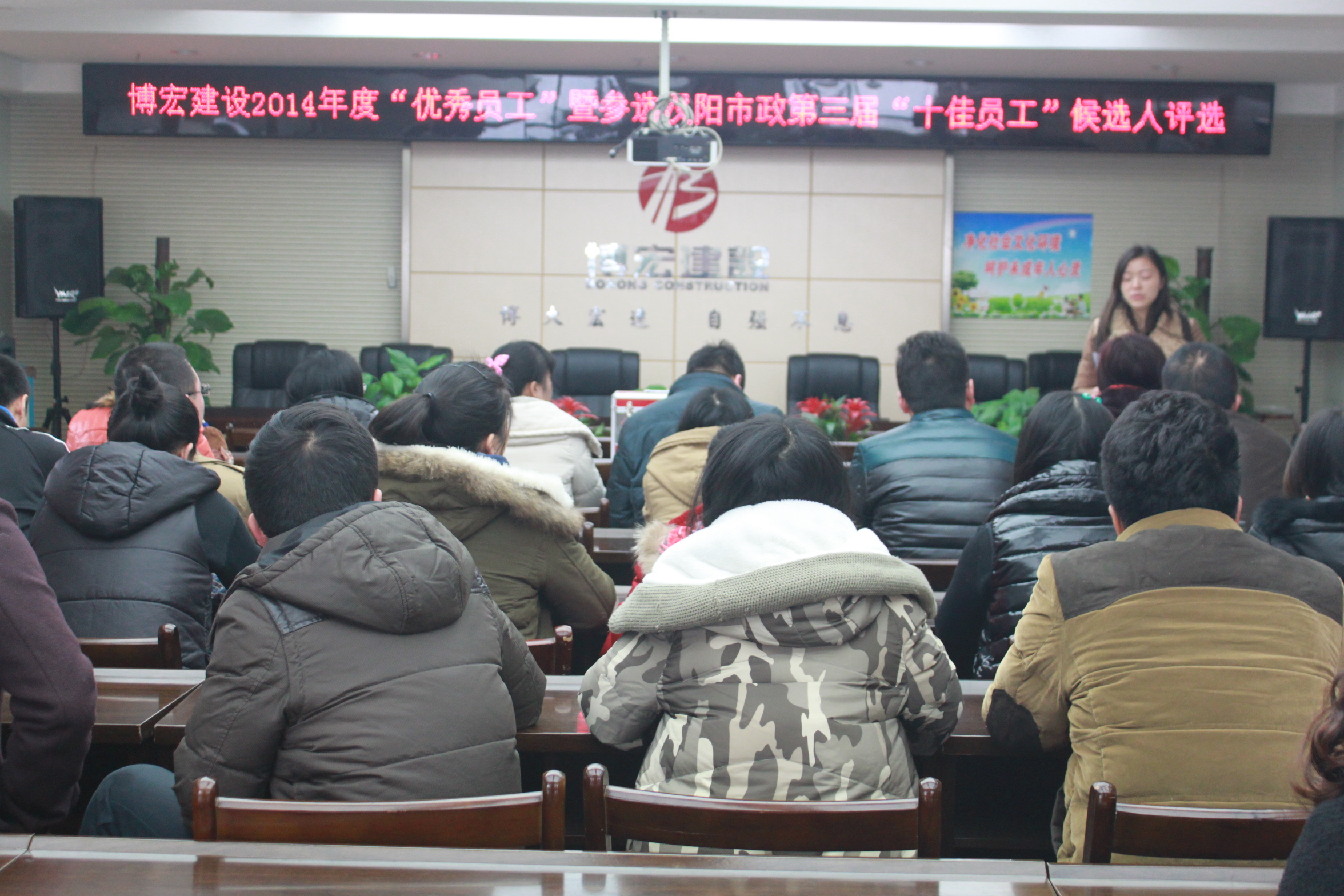 12月29日下午,武漢博宏建設(shè)有限公司在會(huì)議室舉行了2014年度“優(yōu)秀員工”暨參選漢陽市政第三屆“十佳員工”候選人評比活動(dòng),旨在弘揚(yáng)先進(jìn),樹立典型,營造積極向上、爭當(dāng)先進(jìn)的工作氛圍。博宏公司領(lǐng)導(dǎo)班子、各部室行政人員及各項(xiàng)目部成員參加了評選活動(dòng)。