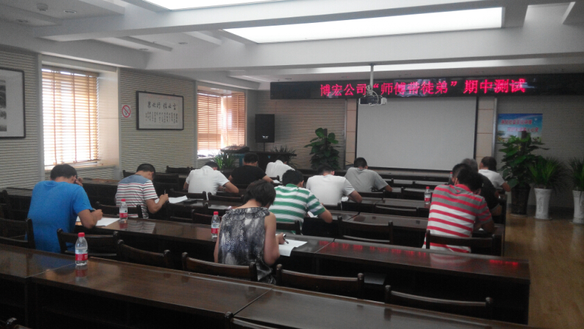 7月27日下午,博宏公司“師傅帶徒弟”活動期中測試在公司大會議室如期開展。