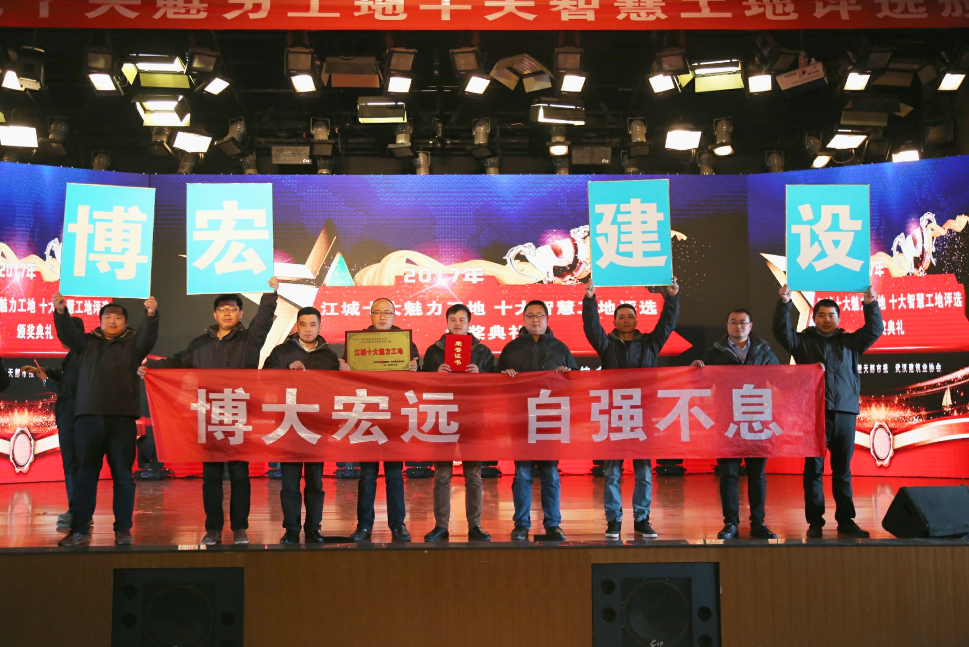 2018年1月7日下午,2017年度“江城十大魅力工地、十大智慧工地”評選活動(dòng)頒獎(jiǎng)典禮在楚天傳媒大廈隆重召開,湖北省總工會(huì)、武漢市總工會(huì)、武漢建筑業(yè)協(xié)會(huì)、湖北日報(bào)、楚天都市報(bào)等相關(guān)單位領(lǐng)導(dǎo)出席典禮,并為武漢四新中學(xué)建設(shè)項(xiàng)目工程等獲獎(jiǎng)工程頒發(fā)獎(jiǎng)牌與榮譽(yù)證書。