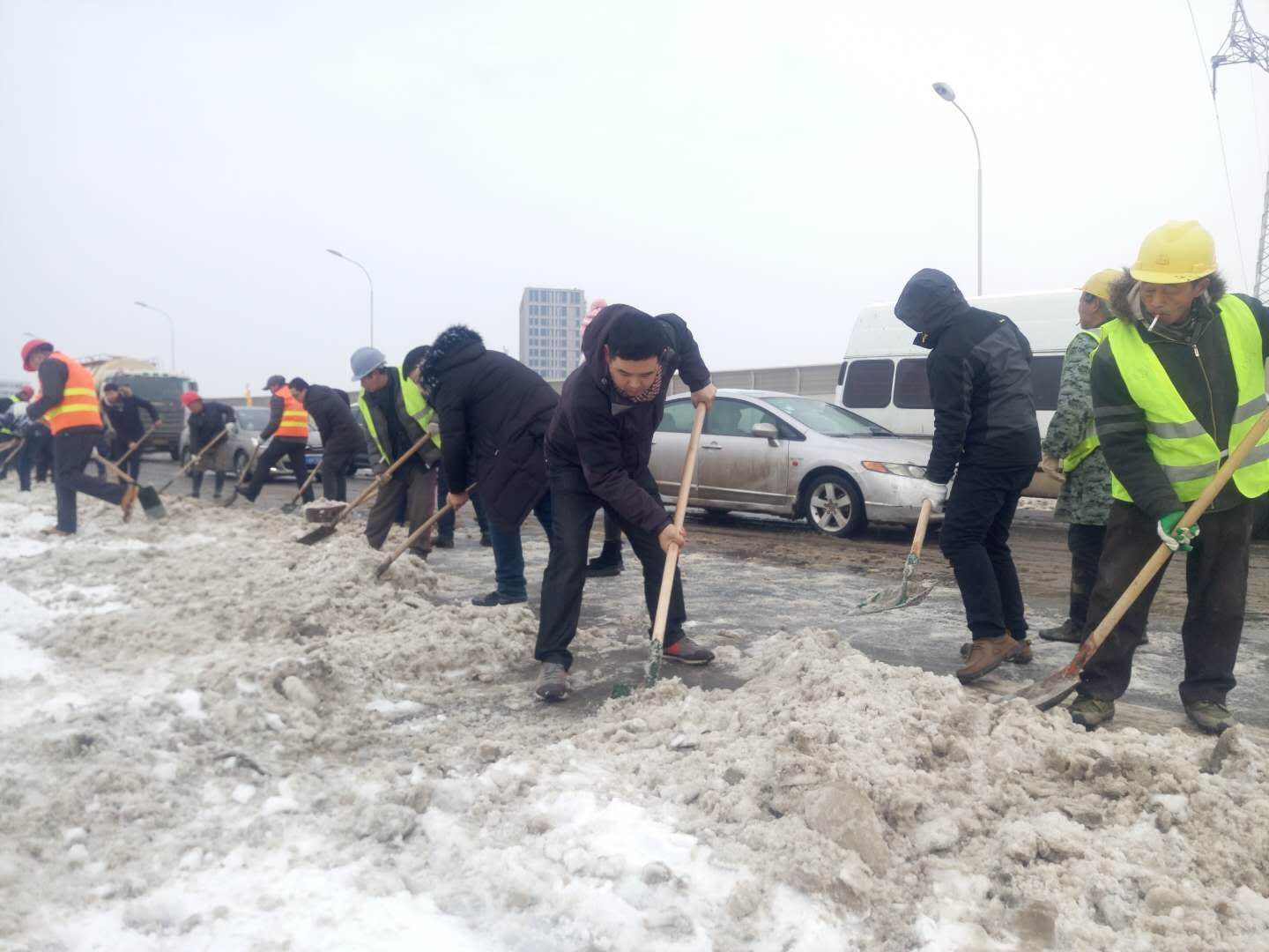 1月28日,公司廣大職工不畏低溫嚴(yán)寒,來到三環(huán)線(龍陽大道~漢陽大道)路段,繼續(xù)奮戰(zhàn),男女齊上陣。期間,漢陽區(qū)委書記馬澤江、集團公司董事長嚴(yán)悌文等領(lǐng)導(dǎo)來到現(xiàn)場指揮工作,為廣大建設(shè)者鼓勁兒加油,下午2點,基本完成主干道清掃,車輛予以通行,截至5點,徹底完成三環(huán)線(龍陽大道~漢陽大道)路段的積雪清掃工作。隨后,鏟雪隊伍搶抓時間,來不及休息便再一次來到琴臺大道對昨夜的積雪進行二次清除,進一步拓寬快車道,下午6點30分完成拓寬任務(wù)。