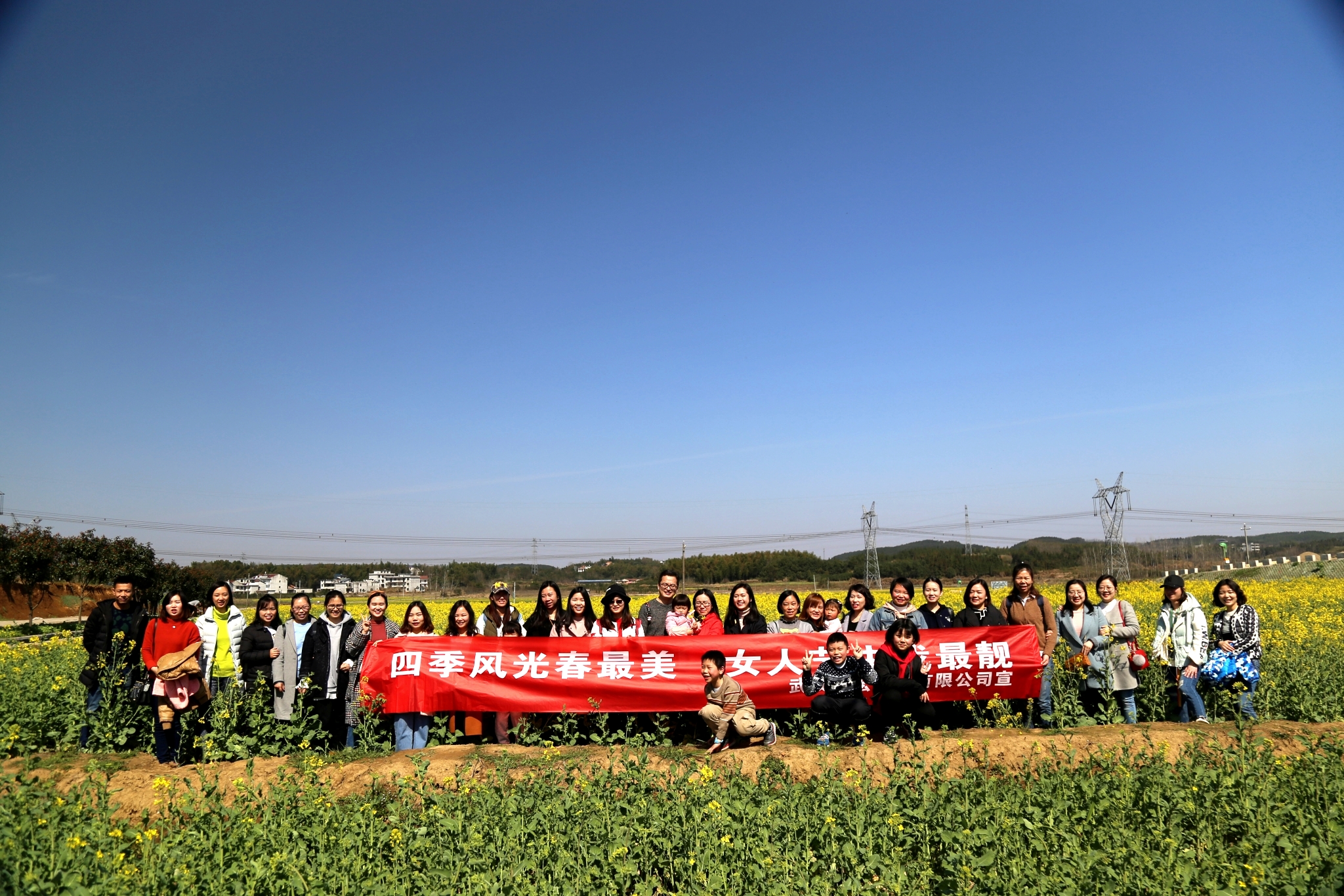 活動(dòng)當(dāng)天,春光和熙,帶著歡聲笑語(yǔ),全體女職工一路驅(qū)車(chē)來(lái)到了湖北咸寧某油菜花基地,在這片黃燦燦的世界里,“女神”們游走在田間小路,連小蜜蜂也“嗡嗡嗡”地歡迎她們的游覽。湛藍(lán)的天空、金黃的油菜花以及一張張綻放的笑顏,那是這個(gè)春天里最美的一幅畫(huà)。