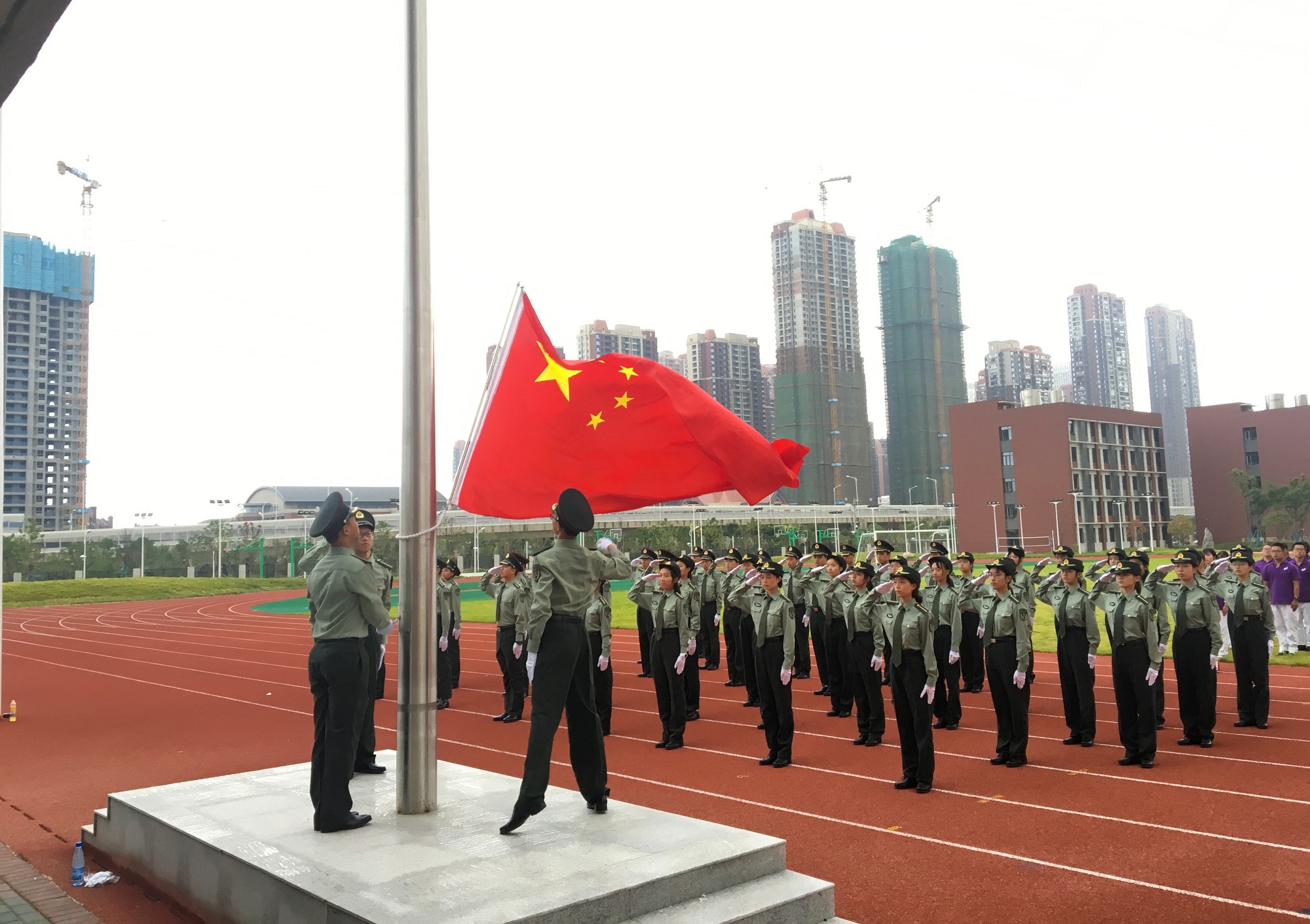 四新中學(xué)作為百年名校武漢市第三中學(xué)的新校區(qū),學(xué)校建設(shè)中曾先后榮獲“湖北省建筑結(jié)構(gòu)優(yōu)質(zhì)工程”“武漢市十大魅力工地”等多項省市級建筑獎項。開學(xué)典禮中,廣大學(xué)生匯集在寬闊的操場上,神采飛揚,朝氣蓬勃,國旗儀仗隊身姿挺拔、步履鏗鏘,盡顯名校風采。