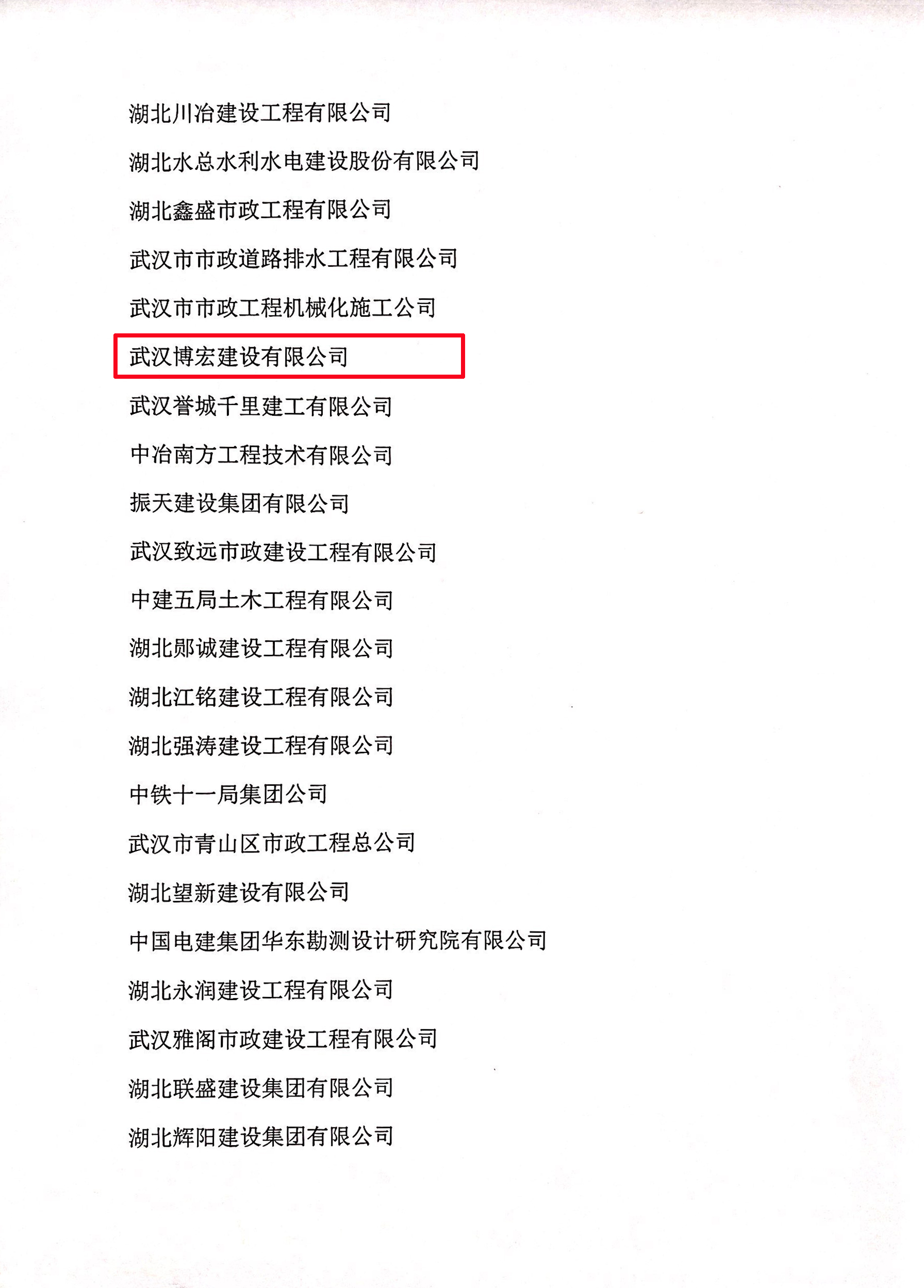 6月2日,湖北省市政行業(yè)協(xié)會發(fā)文表彰,授予博宏建設(shè)“湖北省市政行業(yè)抗擊疫情突出貢獻單位”榮譽稱號。